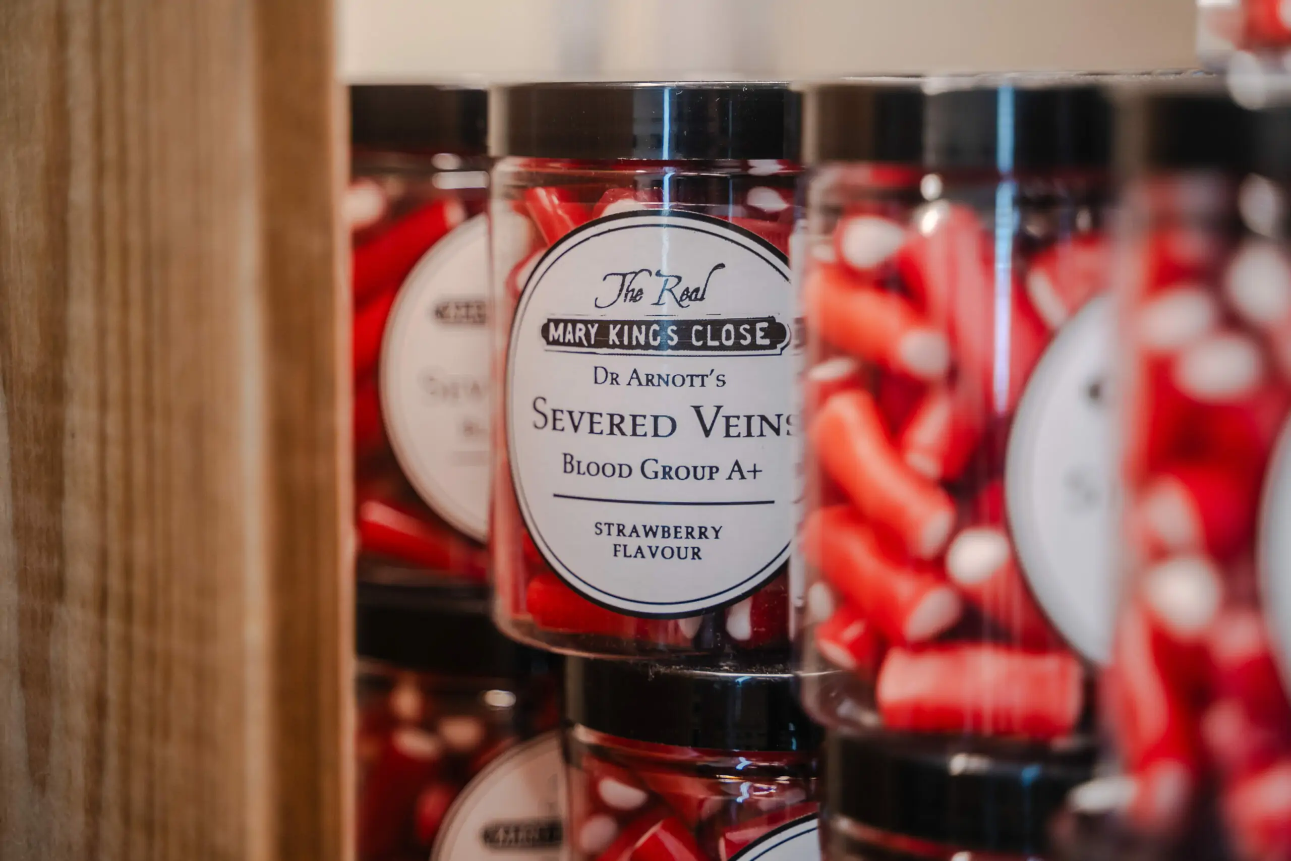 - Dr Arnott’s assortment of 17th century medical tubes, preserves, and apothecary jars. They might just astonish you with their unexpected burst of flavour.